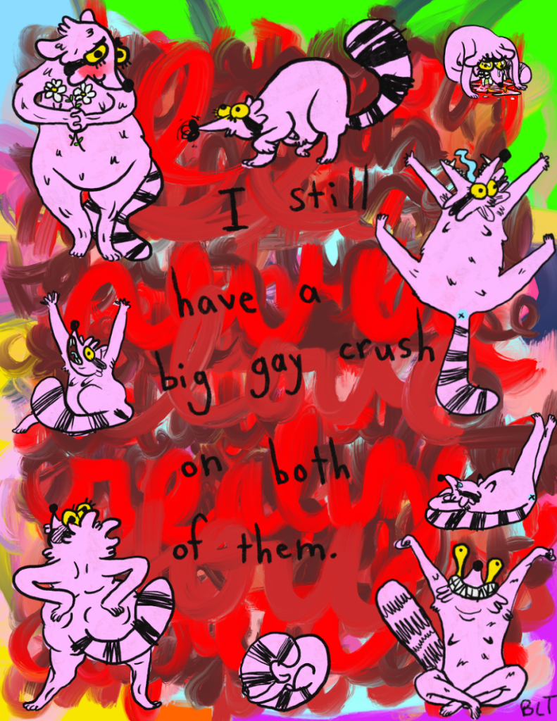 I do want to point out that reaching out to artists that I was moved by was really impactful. Ruby Elliot and I messaged each other quite a bit and talked about art and life. I also messaged Andy Ristaino, and he said that my comics were funny and to keep it up. Even Thurop Van Orman commented on my deviant art and it made a life-long impact! These tiny moments of encouragement that those folx probably don’t even remember have done worlds to motivate and carry me through lots of tough times when I didn’t feel like an important maker or person.