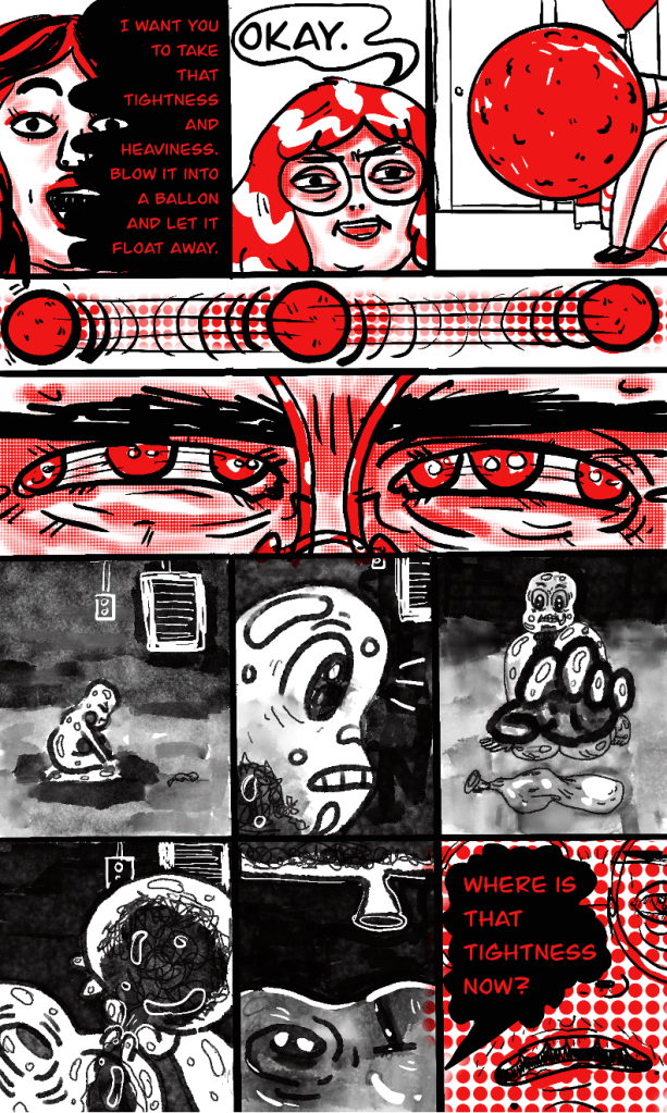 Barbara Lane Tharas (they/them) makes autobiographical and fictional comics that are meant to create opportunities of solidarity for folx who are experiencing things like: anti-fat bias, PTSD, BPD, depression, ADHD, family dysfunction, isolation, loneliness, or just feeling misunderstood and like we don’t belong. They currently live and work in Emporia, Kansas