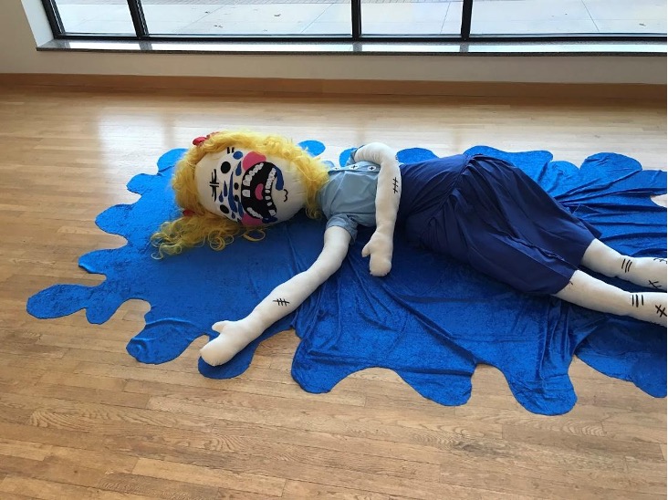 -Soft sculptures of dolls and 3-d word bubbles in the situations presented in the graphic novel or comic book and staging them within the gallery space to create an immersive experience