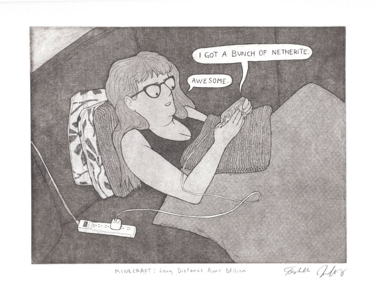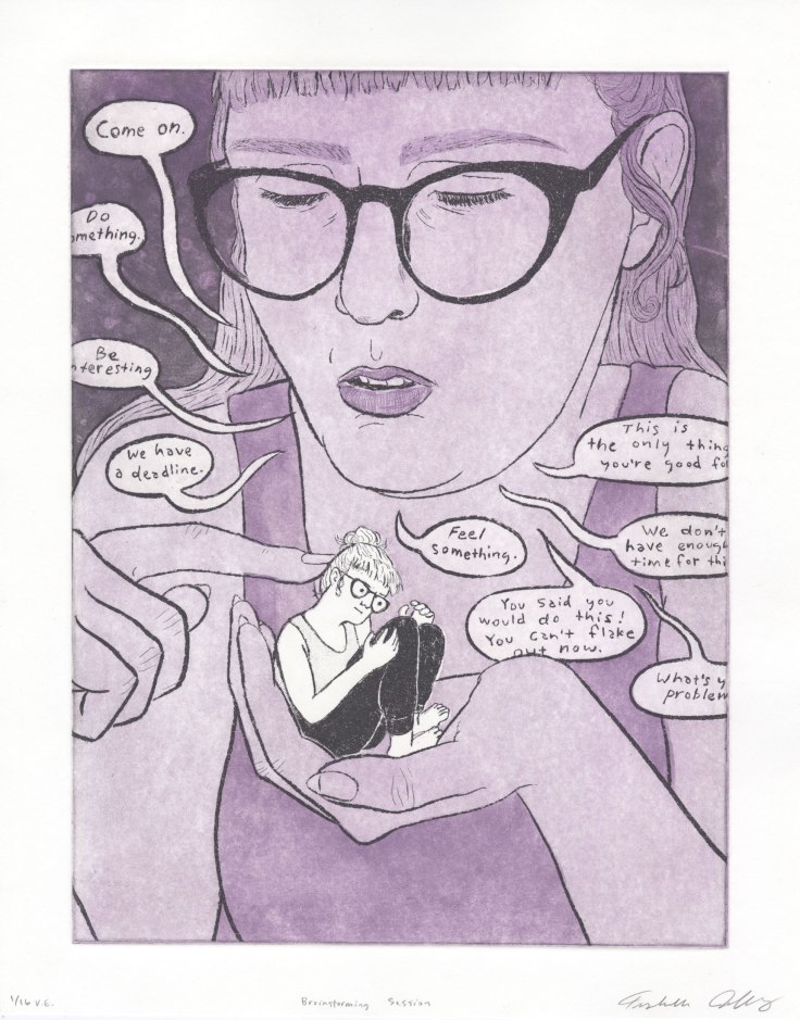 The body of work I’ve been doing, these autobiographical prints that use some comics language, has been ongoing since my early college days, like 2009. I was lucky enough to figure out what I was going to make pretty quickly.