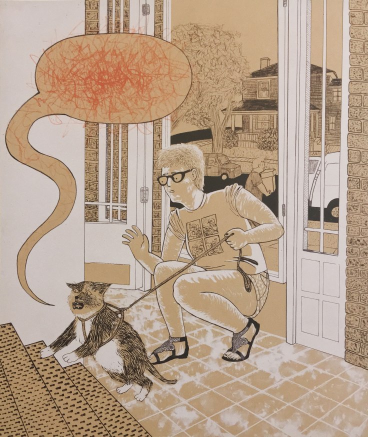 I think the fact that my work exists as printed matter relates to the history of comics in an interesting way. In the age of the internet, it’s easy to forget how much mass media is and was reliant on the printing press. The mark making I use is so influenced by the mediums I work in, all of which began their existence as a way to make multiples. Books published by small and independent publishers are where I find the most inspiration. I love zine culture and work that is made by a single passionate person. Whether it’s a photocopied one-page zine or a beautifully delicate hand printed artist book, every comic is an absolute treasure.