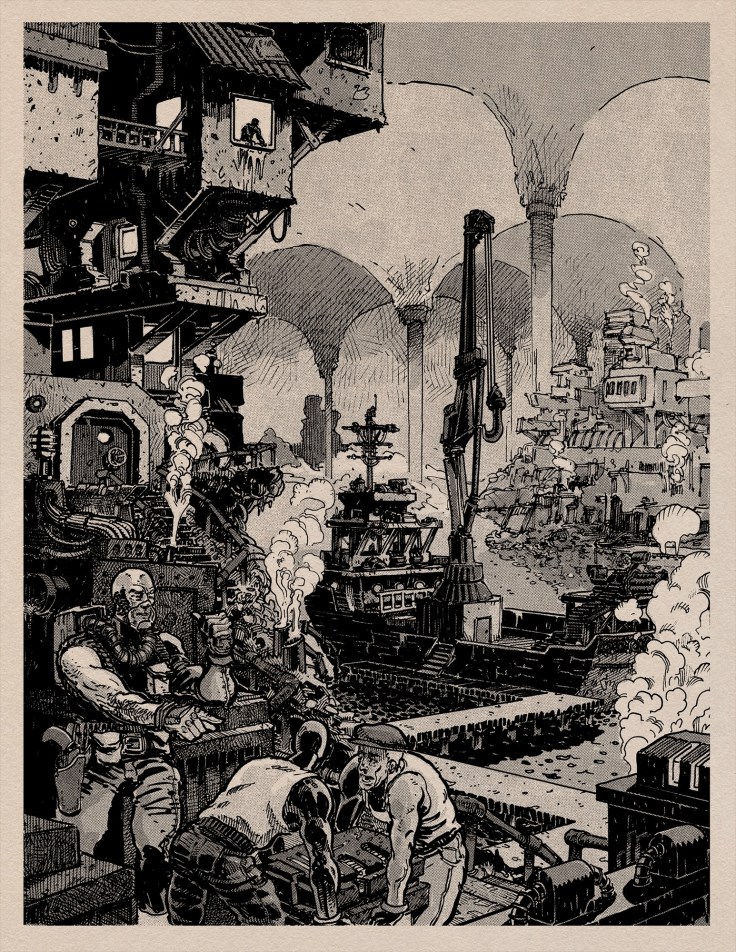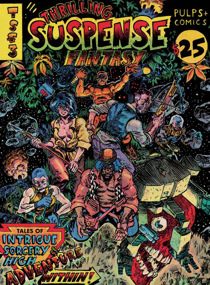 My current primary project, Thrilling Suspense Fantasy, engages with the golden age of comics and also heavily with the fantasy and science fiction revival of the late 70s and 80s seen in magazines like Heavy Metal. This era marked the late career stages of golden age artists like Wally Wood, Frank Frazetta, and Jack Kirby along with the first serious works from Frank Miller, Klaus Janson, Richard Corben, Moebius, Walt Simonson, Chris Claremont, and John Byrne–and all of these creators are vitally important to me.
