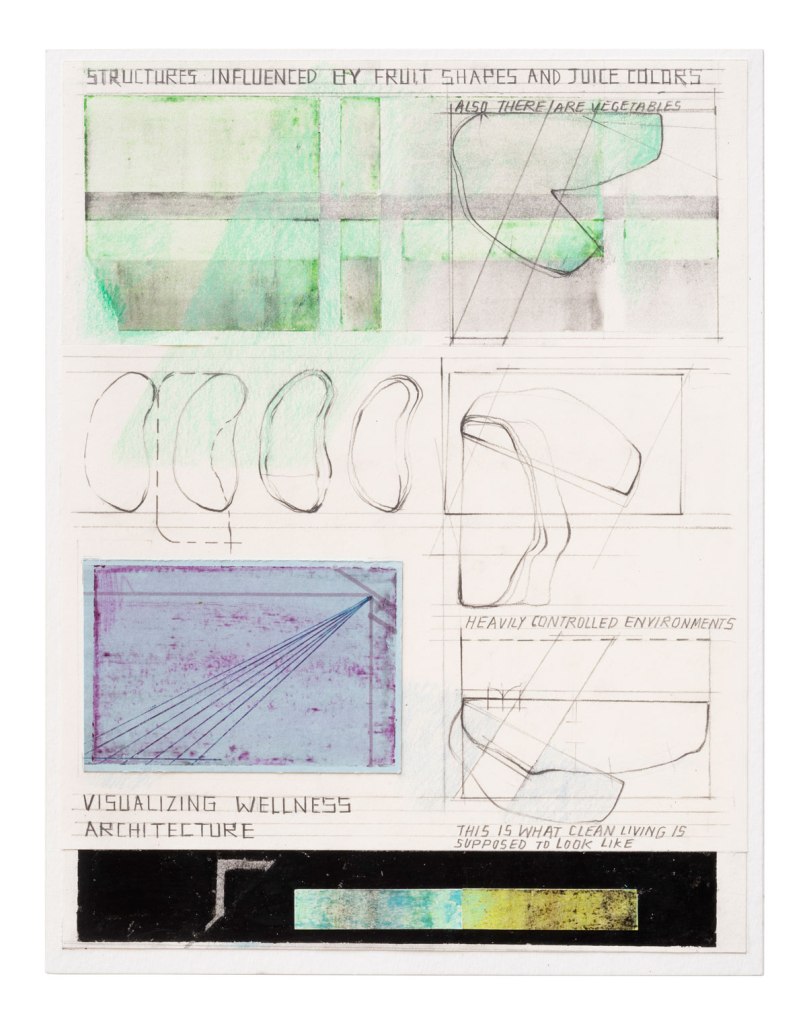 At the University of Illinois at Urbana-Champaign, I majored in graphic design, thinking this was a more practical option than fine art, but then went on to grad school for an MFA at the School of the Art Institute. I continued to draw, still struggled with it, but I kept at it. I was drawing floorplans and cartoon-like renderings of buildings, objects and people and focusing on the autobiographical, mixing fact with fiction, and working with different types of humor (satire, the mundane, self-deprecation). Post-grad school, the work continued to evolve. Today, 20 years later, the drawings are semi-abstract schematics and shapes paired with texts, but the floorplans, other references to the built environment and various forms of humor continue to play an important role in it.