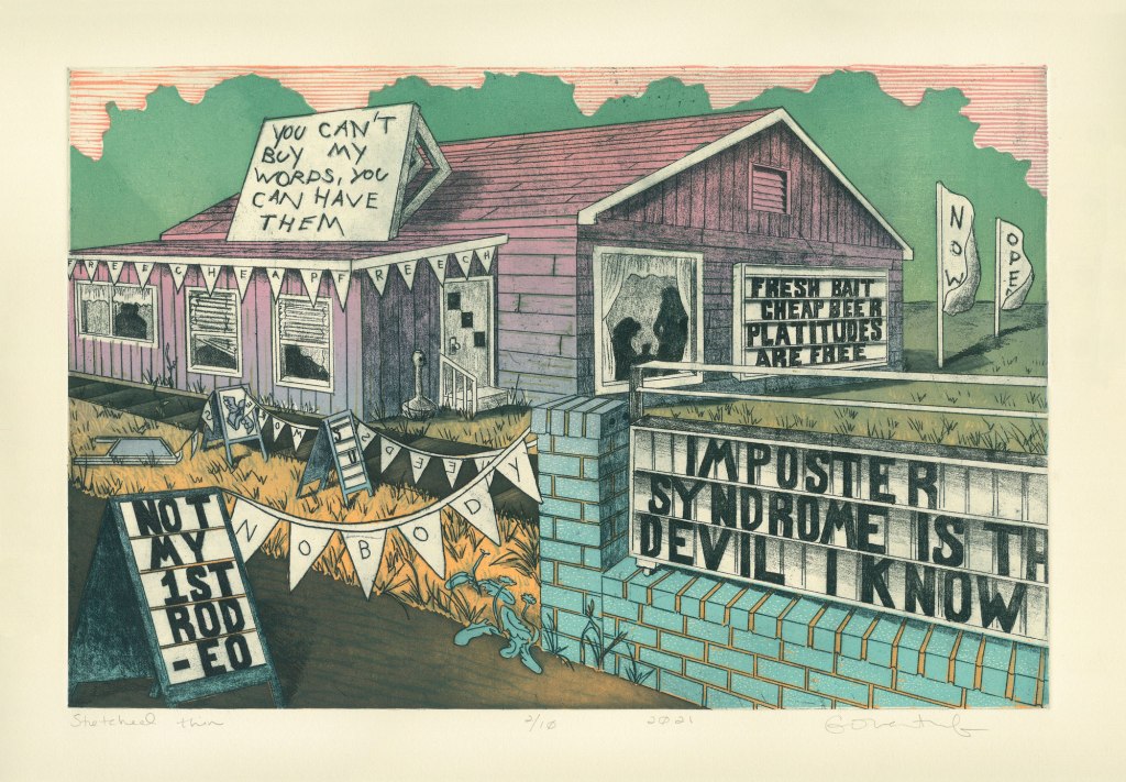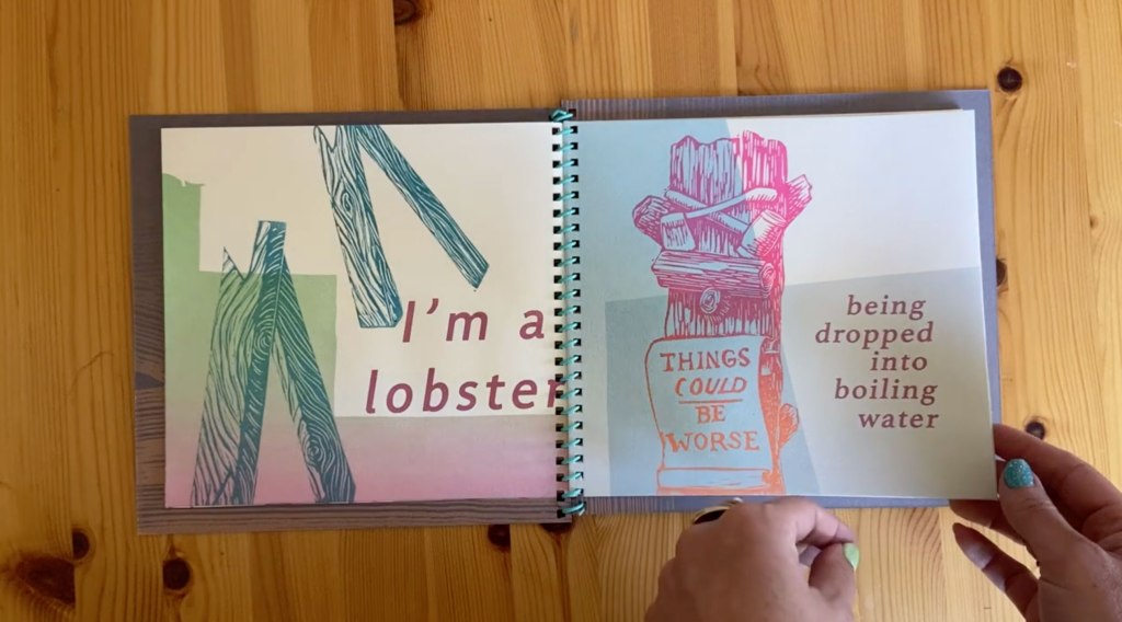 Edie’s print-based work takes the forms of traditional prints, book arts, zines and sculptural work. The relationship of text and image are an integral part of her creative practice. Some of Edie’s work focuses on sociopolitical issues and some work tends to be more personal in nature, but central themes concerning shared experiences such as anxiety, burnout, and imposter syndrome can be found throughout.