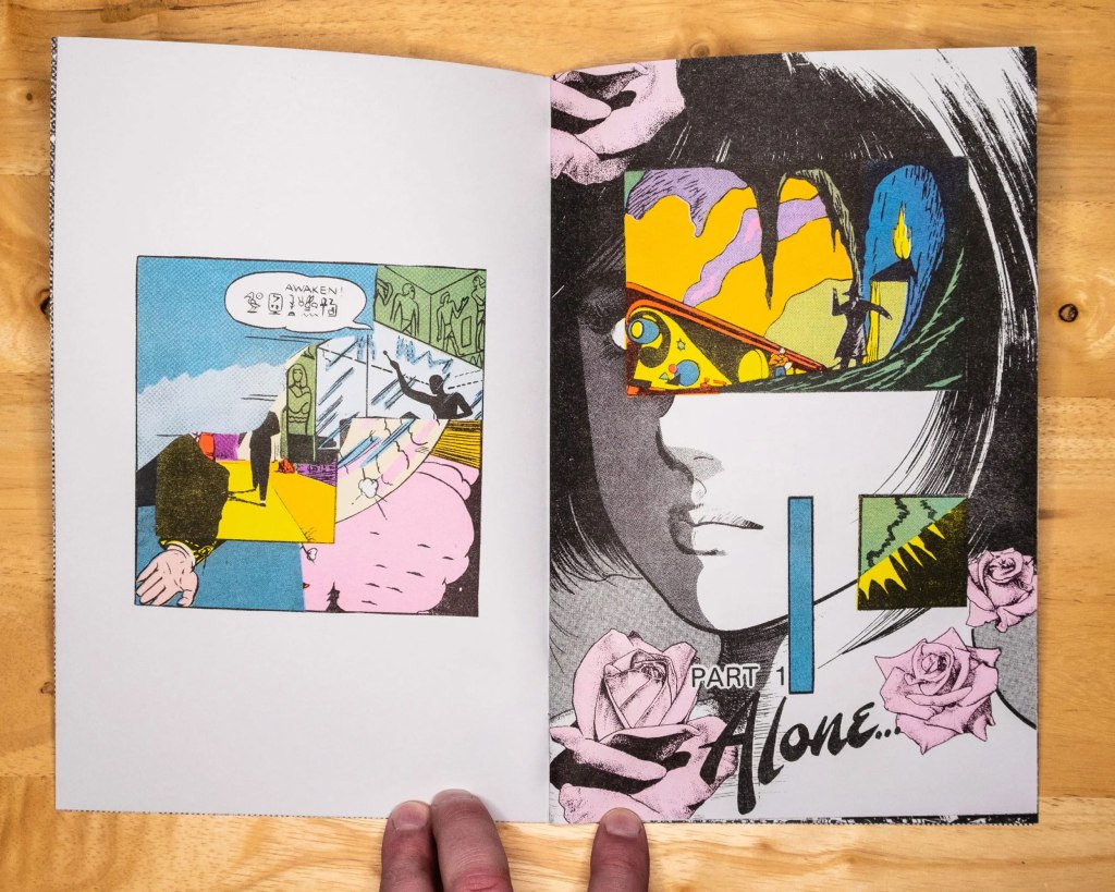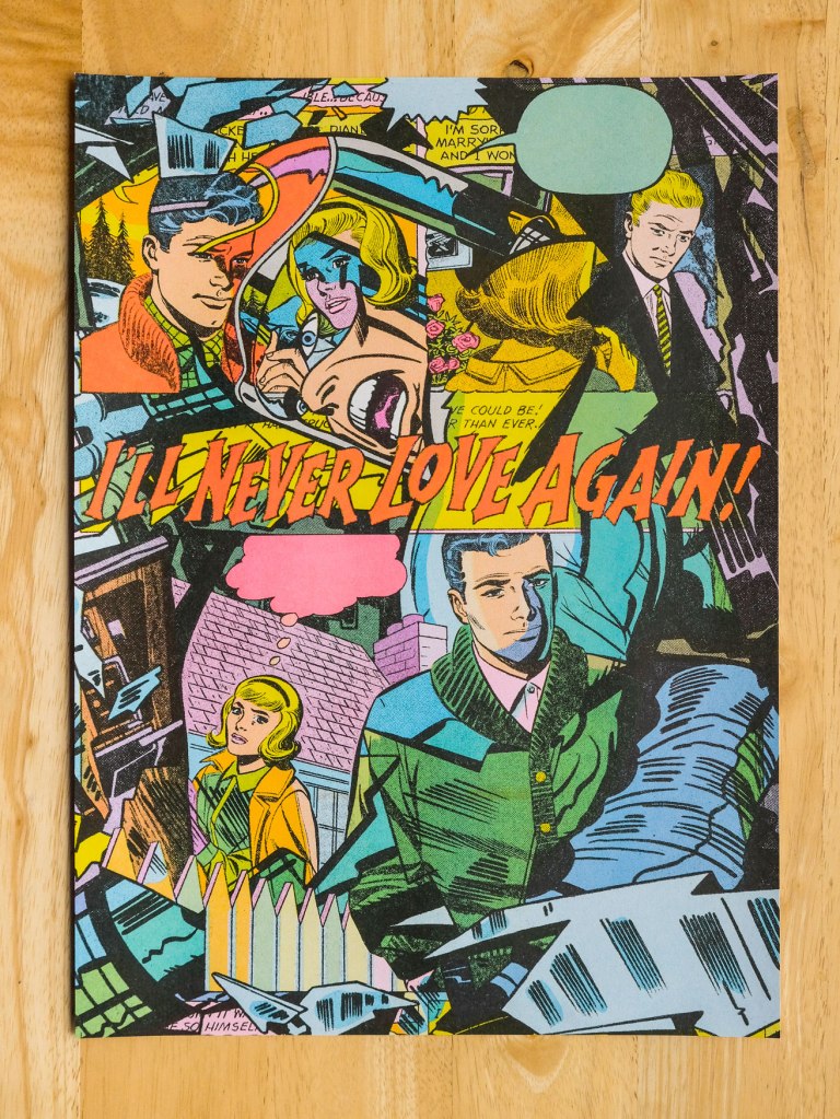 Maybe not “afraid,” but one concern I’ve always had as a collage artist working with comics is the potential for misunderstanding of my work or my intentions. I always try to be clear that I’m reusing, manipulating, and collaging existing imagery and text, but not all audiences hear that. Especially at independent comics shows, where most of the exhibiting artists are illustrators, people often assume I’m an illustrator working in a retro style rather than a collage artist recontextualizing vintage material.